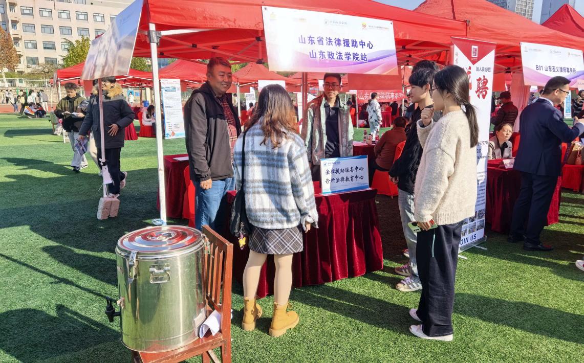 11月13日,山东政法学院举办“2025年秋季毕业生双选会”,来自全省203家用人单位携岗参会,涵盖法律、金融、教育、科技、互联网等多个领域,为学生提供了一千余个优质就业岗位。本次双选会现场设立了“法律援助咨询站”,由山东省法律援助中心山东政法学院工作站的师生志愿者驻场,为参会学生和用人单位提供“面对面”法律咨询。这一服务贴近学生实际需求,受到现场广泛关注。